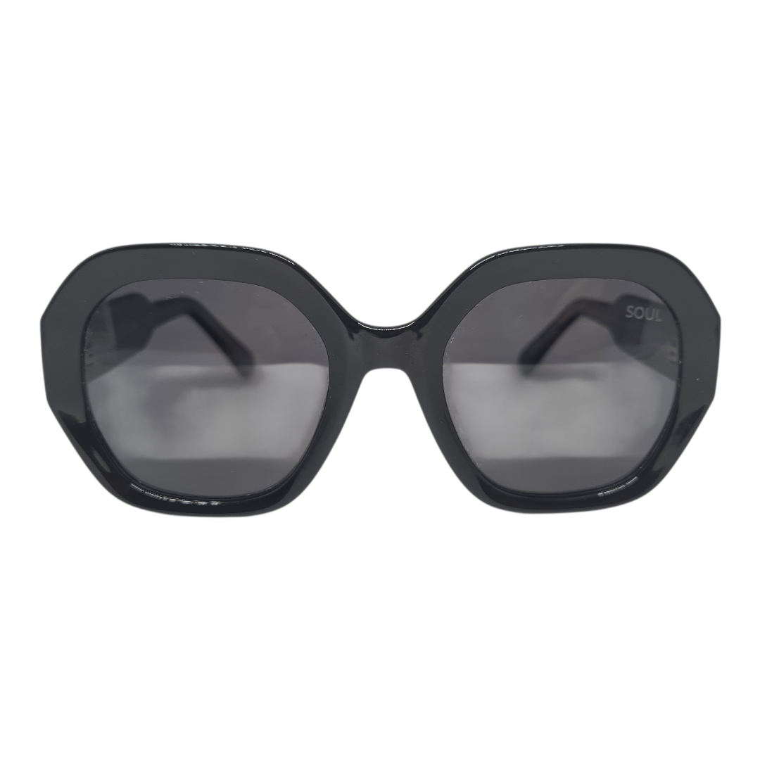 As lentes pretas intensas oferecem proteção e sofisticação, criando um contraste elegante com o acabamento polido da armação. O formato hexagonal, pouco convencional, é ideal para quem busca um acessório marcante e fora do óbvio.
